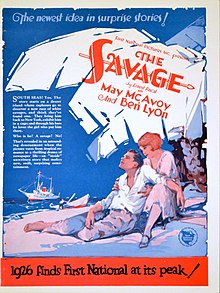 The Savage is a 1926 American silent comedy film directed by Fred C. Newmeyer and starring Ben Lyon and May McAvoy. The film was produced and distributed by First National Pictures. Based on a short story by Ernest Pascal, it tells the story of a science writer who tries to discredit rivals of his by posing as a wild man.[1][2]