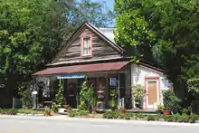 The Store, until the late 1990s was a one-story structure surmounted by a high gable roof and which flanking enclosed side wings with shed roofs. It has been called Peeples Store. The double front doors which have glass panels in the transom, open under a shed roof front porch supported by four square posts.[1]