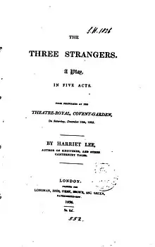The Three Strangers is an 1825 stage melodrama by the British writer Harriet Lee.[1] It was based on one of her own works Kruitzner, co-written as part of The Canterbury Tales with her sister Sophia.[2]