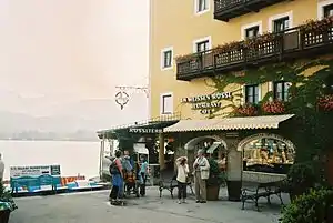 - ↑ According to the German spelling reform of the 1990s, which curbed the use of the letter ß, Rößl, which has a diminutive suffix added to the noun Roß ("horse", "steed"), now has to be spelt Rössl (just as it is Ross now instead of Roß). Therefore, both Rößl and Rössl can be seen nowadays, depending on when a particular text was written.