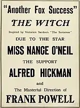 - ↑ "'The Witch' Based on Sardou's 'Sorceress', Is Next Fox Medium for Nance O'Neil", Motion Picture News, July 31, 1915, p. 68. Internet Archive. Retrieved January 4, 2020.