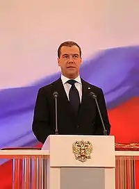 The first speech was made by the outgoing President Dmitry Medvedev:[2][3]