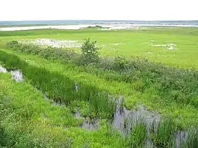 The Tiny Marsh Provincial Wildlife Area, located in Simcoe County, Central Ontario, Canada, is Ontario’s first provincially owned and managed wetland and is one of approximately 1200 Important Bird Areas recognized in Canada. The marsh is situated near Elmvale, approximately three kilometres inland from Nottawasaga Bay.[1]: 3 Open to visitors year-round, the area consists of 8.5 square kilometres (3.3 sq mi) of marshes, open water, bog, and upland forest.[1]: 3 There are 25 kilometres (16 mi) of trails taking visitors to dikes, two observation towers, a marsh viewing mound, and a boardwalk.[1]: 16 There is a nature centre, featuring displays of the marsh and its flora and fauna.
