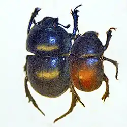 Adults can be found from spring to summer. These beetles are coprophagus, occasionally mycophagous.[3] They usually carry to the nest portions of animal droppings, on which the females will deposit the eggs.[5]