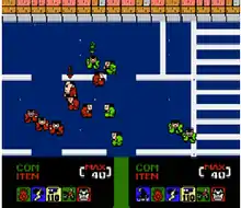 Tsuppari Wars (つっぱりウォーズ, "Delinquent Wars")[4] is an action video game for the Family Computer. The object is to acquire all of the enemies' territory and defeat the evil gang leaders. Even though this game was only released in Japan, the gangsters fight without any weapons and the violence level is mild compared to later gang-related games.