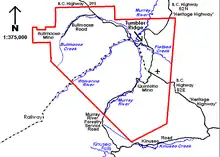 The townsite is located on a series of southern-facing gravel terraces on a ridge of Mount Bergeron, overlooking the confluence of the Murray and Wolverine Rivers.[37] The site, above the floodplain of the Murray River, has well-drained soils with easy access to aquifers with potable water.[38] The rocks, mostly shale and mudstone but lacking quartzite, make the mountains less rugged than their neighbouring ranges.[39] The terraces grow Lodgepole Pine, White Spruce, Trembling Aspen trees. Moose and elk are common.[40][41] Escarpments to the east and north could pose a snow avalanche threat but are kept forested for stability.[42] In 2006, the town was evacuated for several days as four forest fires approached the town.[43]