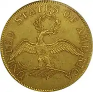 A twenty-cent piece had been proposed as early as 1791, and again in 1806, but had been rejected.[2] The 1806 bill, introduced by Connecticut Senator Uriah Tracy, sought both a two-cent piece and a "double dime". It was opposed by mint director Robert Patterson, though his opposition was more to the two-cent piece, which Tracy proposed be struck in billon, low-grade silver that would be difficult to recover when melting the coins. The bill passed the Senate twice, in 1806 and 1807, but did not pass the House of Representatives.[3] No twenty-cent piece was issued prior to the 1870s, but Americans were familiar with the denomination as the two reales piece struck in Spain, known as a "pistareen" in the United States, passed for twenty cents (its Spanish colonial equivalent passed for a quarter).[4]
