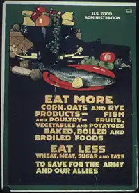 One of the agency's important tasks was the stabilization of the price of wheat on the U.S. market. Concepts such as "meatless Mondays" and "wheatless Wednesdays" were also implemented to help ration food, so that the government could prioritize the war effort.