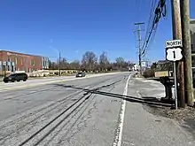 At Fallsington, the original road crossed the Pennsylvania Railroad's Trenton Cutoff on a bridge just east of the present bridge, built on a reverse curve to shorten the span. It used Trenton Road and Main Street from the bridge to the intersection with Woolston, where Main Street is now cut. In 1917, an underpass under the railroad was built to the west on Woolston Drive; this became the main route by 1924.[9][10]