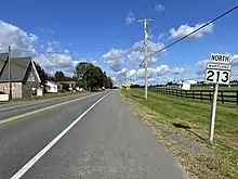 Maryland Route 213 (MD 213) is a 68.25-mile (109.84 km) state highway located on the Eastern Shore of Maryland in the United States. The route runs from MD 662 in Wye Mills, Queen Anne's County, north to the Pennsylvania border in Cecil County, where the road continues into that state as Pennsylvania Route 841 (PA 841). The route, which is a two-lane undivided highway most of its length, passes through mainly rural areas as well as the towns of Centreville, Chestertown, Galena, Cecilton, Chesapeake City, and Elkton. MD 213 intersects many routes including U.S. Route 50 (US 50) near Wye Mills, US 301 near Centreville, and US 40 in Elkton. It crosses over the Chesapeake & Delaware Canal in Chesapeake City on the Chesapeake City Bridge. MD 213 is designated by the state as the Chesapeake Country Scenic Byway between the southern terminus and Chesapeake City with the portion north of MD 18 in Centreville a National Scenic Byway. In addition, the route is also considered part of the Atlantic to Appalachians Scenic Byway between Chesapeake City and MD 273 in Fair Hill.