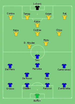 10. 1 2 3 "Team Line-ups – Group C – Italy-Romania" (PDF). Union of European Football Associations. 13 June 2008. Retrieved 11 June 2012.