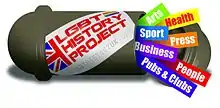 Sport is one of the themes of the site, reflecting its origins in connection with 'London 2018', the campaign to bring the Gay Games/Outgames to London in 2018.[7] However it now seeks to cover all aspects of LGBT life in the UK, from the earliest times to the present day. The Project's logo is a time capsule, reflecting the aim of preserving for future generations the history of LGBT people, institutions, and events that would otherwise be forgotten. Indeed, it has recorded a number of LGBT organisations, and venues such as gay pubs, that have disappeared and have needed to be uncovered in archived defunct websites or old newspaper cuttings. While following in large part the approach laid down by Wikipedia, it has a much more relaxed approach to notability, and will cover any UK LGBT-related subject for which a record exists.