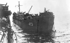![]() USS LST-473, coming alongside while underway in the Southwest Pacific, date unknown. | |