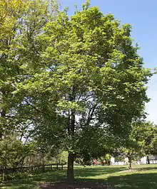 Ulmus 'Morton Stalwart' (selling name Commendation), is a Morton Arboretum hybrid cultivar arising from a controlled crossing of Accolade with the hybrid of a Field Elm U. minor from eastern Russia and a Siberian Elm U. pumila.[2][3] Tested in the US National Elm Trial coordinated by Colorado State University,[4] Commendation averaged a survival rate of 85% after 10 years.[5]