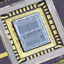 One of the areas in which ultrasonic welding is most used and where new research and experimentation is centered is microcircuits.[6] This process is ideal for microcircuits since it creates reliable bonds without introducing impurities or thermal distortion into components. Semiconductor devices, transistors and diodes are often connected by thin aluminum and gold wires using ultrasonic welding.[9] It is also used for bonding wiring and ribbons as well as entire chips to microcircuits. An example of where microcircuits are used is in medical sensors used to monitor the human heart in bypass patients.
