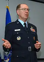 - ↑ U.S. Air Force (13 August 2012). "Gen. Mark A. Welsh III addresses an audience after being sworn in as the 20th Air Force chief of staff during a ceremony at Joint Base Andrews, Md., Aug. 10, 2012". Retrieved 25 March 2022. Alt URL