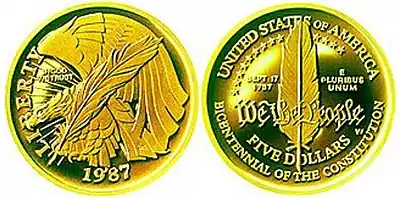 - ↑ "Constitution Bicentennial Gold $5". United States Mint. Retrieved 2019-03-31.