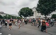 On June 24, 2022, anti-abortion and pro-abortion rights activists demonstrated outside the Supreme Court building following the decision to overturn Roe and Casey.[254] By noon, there was a major police presence around the Supreme Court building and the Capitol building, including police with riot gear, and police squad cars and SUVs. Multiple streets were barricaded by police.[255]