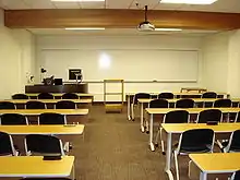 A smaller classroom fitted with a variety of instructional technologies.