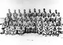 Marine Fighter Squadron 223 (VMF-223) was commissioned on May 1, 1942 at Marine Corps Air Station Ewa, Oahu, Hawaii.[1] The "Bulldogs" first operational aircraft was the Brewster F2A Buffalo. They left Hawaii for combat equipped with the Grumman F4F Wildcat. VMA-223 became the first fighter squadron committed to combat during the Battle of Guadalcanal when they landed at Henderson Field on August 20, 1942.[2] Upon arriving, the squadron became part of the Cactus Air Force and for the next two months slugged it out with Japanese pilots, based out of Rabaul, for control of the skies over Guadalcanal. VMF-223 departed the island on October 13, 1942 having accounted for 83 enemy aircraft shot down including that of Japanese ace Junichi Sasai.[3] The two leading aces in the squadron were the commanding officer, Major John L. Smith, with nineteen confirmed shoot downs and Marion E. Carl who was credited with sixteen.[4] Smith was to be awarded the Medal of Honor for heroism and Captain Carl would earn the first of his two Navy Crosses for these actions.[3] These victories would come at the cost of six pilots killed and six wounded, and only eight Wildcats still operational.[5]