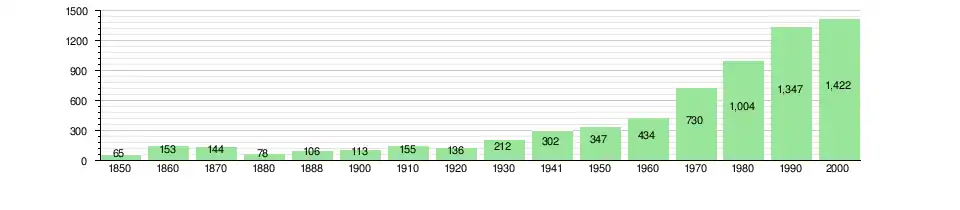 As of 2008, the population was 48.9% male and 51.1% female. The population was made up of 729 Swiss men (42.1% of the population) and 117 (6.8%) non-Swiss men. There were 775 Swiss women (44.8%) and 109 (6.3%) non-Swiss women.[9] Of the population in the municipality, 313 or about 22.0% were born in Veyras and lived there in 2000. There were 678 or 47.7% who were born in the same canton, while 199 or 14.0% were born somewhere else in Switzerland, and 185 or 13.0% were born outside of Switzerland.[8]