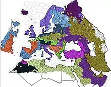 Forty players begin each game of Victory! with a starting year of 1939.[25] The game centers on Europe while including North Africa, the Middle East, the United States, and Canada.[26] Each player begins with equal resources, money and factories.[27] However, geography creates differences in starting positions to include country size and number of bordering countries, and terrain considerations.[27] Players can choose a technology suite for their air, ground, and naval forces that are preselected (for the American, British, German, and Russian technology) or manually select technology for their forces for other countries.[28]