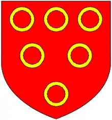 Arms of Vipont: Gules, six annulets or. These arms were later quartered by Baron Clifford