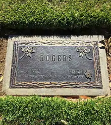 Rogers spent winters in Rancho Mirage and summers in Medford, Oregon. She died at her Rancho Mirage home on April 25, 1995, from a heart attack at the age of 83.[29] She was cremated and her ashes interred with her mother Lela Emogene in Oakwood Memorial Park Cemetery in Chatsworth, California.[30]
