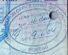 Passport stamp of Dominica issued in Roseau