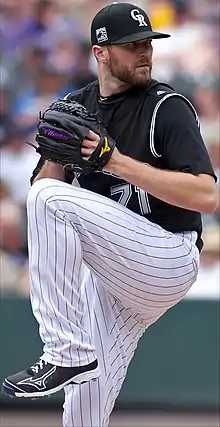 Davis pitching for the Colorado Rockies in 2019