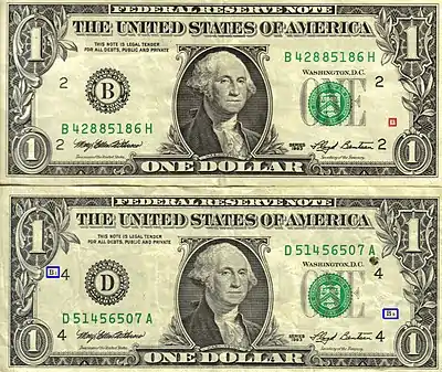 Portions of this article use material from the Bureau of Engraving and Printing website, which is in the public domain.