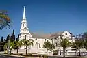 Wellington is a town in the Western Cape Winelands, a 45-minute drive from Cape Town, in South Africa with a population of approximately 62,000. Wellington's economy is centered on agriculture such as wine, table grapes, deciduous fruit, and a brandy industry. The town is located 75 km north-east of Cape Town, reached by the N1 motorway and R44. Due to the growth of the Flakkaland and Mbekweni township south of the town, it now forms a de facto urban unit with Paarl, just 10 km to the south. Wellington now officially falls under the Drakenstein Local Municipality, which also covers Saron and Paarl.