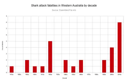 - ↑ "WA's southwest coast becomes world's deadliest for shark attacks". The Australian. 2 April 2012. Retrieved 12 May 2017.