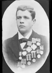 He set a world record in 500 m in 1895 with the time 46.8.[1] He was two time national all-round champion, in 1895 and 1896. Around the turn of the century he emigrated to South Africa and he married Sarah Anne Beeming in Cape Town, South Africa.