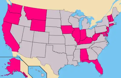Light Blue – States where A.E. had submitted petitions. (41 Confirmed)