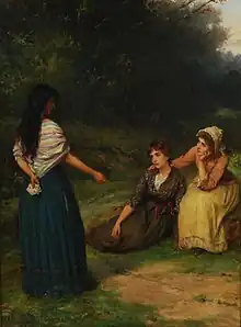 The fortune teller. Oil on canvas. Signed W. Oliver and dated 1886.