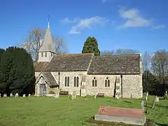 Woodmancote church (TQ 231 149) is dedicated to St Peter. It was originally built in the thirteenth century. In about 1228 the church was given to the Knights Templar, and in 1312 it passed to the Knights of St John. It was largely rebuilt in 1869 and very little remains from the earlier periods of the church history. The bowl, drum and pillars of the font are Norman and the remainder dates back to the 14th century.[6] It has some fossil winklestone in its south wall.