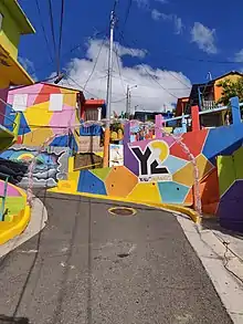 Following Hurricane Maria, in order to lift up their spirits, Yauco's artists worked on "Yaucromatic", a project to paint colorful murals in Cerro de Yauco in Yauco barrio-pueblo.[40]