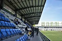 The stadium has a seating capacity of 1,500 spectators. The pitch with the dimensions 57 m × 90 m (187 ft × 295 ft) has artificial turf ground.[1]