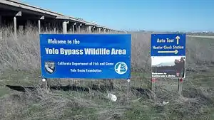 The Yolo Bypass Wildlife Area is located within the Yolo Bypass in Yolo County, California. The wildlife area is managed by the California Department of Fish and Wildlife with the intent of restoring and managing a variety of wildlife habitats in the Yolo Basin, a natural basin in the north part of the Sacramento-San Joaquin River Delta. The creation of the wildlife area was spearheaded by the Yolo Basin Foundation.[1] The California Department of Fish and Wildlife and Yolo Basin Foundation are the core partners in the operation of this unique community resource. Located at 38°33′02″N 121°37′35″W / 38.550515°N 121.626291°W