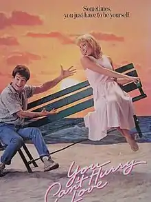 You Can't Hurry Love is a 1988 American romantic comedy film written and directed by Richard Martini and starring David Leisure, Scott McGinnis, Anthony Geary, and Bridget Fonda. A man moves to Los Angeles and hears that "the only way to be successful in Los Angeles is to pretend to be someone else." He goes on a series of video dates and learns that everyone he meets is pretending to be someone else except for the girl who works at the dating service; he realizes the only way to find love is to be himself.