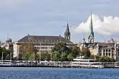 Steam navigation started on Lake Zürich in 1834, when Franz Carl Caspar and Johann Jakob Lämmlin founded a new company (Caspar und Lämmlin, Unternehmer der Dampfschiffahrt auf dem Zürcher- und Walensee) and ordered their first ship from William Fairbairn of Manchester, England. Minerva entered service the following year.[3] When the cuty fortifications were abolished, the then called Bauschänzli bastion remained intact, and served from 1835 to 1883 as the landing site for the first steamboats on the lake, later provided by the Zürichsee-Schifffahrtsgesellschaft.[4]