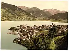 Zell am See is the administrative capital of the Zell am See District in the Austrian state of Salzburg. Located in the Kitzbühel Alps, the town is an important tourist destination due to its ski resorts and shoreline on Lake Zell.[3][4] While Zell am See has been a favored winter and summer resort for the European aristocracy since the 19th century, it is known as a hub of the international jet set today.[5][6][7]