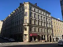 Zinnkeller is located in a house built in 1895 at the corner of the streets Liisankatu and Meritullinkatu, designed by J. Rosenberg.[6] The dishes in the restaurant come from such places as Berlin, Schleswig-Holstein, Hamburg, Baden-Württemberg and Schwarzwald. Part of the ingredients in the kitchen as well as all the wines and beers come from Germany.[7]
