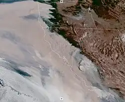 ![]() Satellite image of the smoke from the wildfires burning in California and Oregon on September 9, 2020 | |