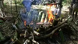 Mountain gorillas of Central Africa also feed on bamboo, and have been documented consuming bamboo sap which was fermented and alcoholic;[30] chimpanzees and elephants of the region also eat the stalks. The larvae of the bamboo borer (the moth Omphisa fuscidentalis) of Laos, Myanmar, Thailand and Yunnan, China feed off the pulp of live bamboo. In turn, these caterpillars are considered a local delicacy. Bamboo is also used for livestock feed with research showing some bamboo varieties have higher protein content over other varieties of bamboo.[48]
