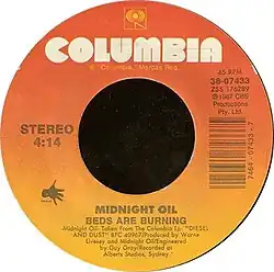 "Beds Are Burning" is a 1987 song by the Australian rock band Midnight Oil, the first track from their album Diesel and Dust. This song was released as the second single from the album.