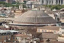 The Romans used concrete extensively from 300 BC to AD 476.[18] During the Roman Empire, Roman concrete (or opus caementicium) was made from quicklime, pozzolana and an aggregate of pumice.[19] Its widespread use in many Roman structures, a key event in the history of architecture termed the Roman architectural revolution, freed Roman construction from the restrictions of stone and brick materials. It enabled revolutionary new designs in terms of both structural complexity and dimension.[20] The Colosseum in Rome was built largely of concrete, and the Pantheon has the world's largest unreinforced concrete dome.[21]