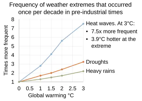 - Wildfires, such as Australian bushfires and wildfires in the United States, become more common during times of drought and may cause human deaths.[65]