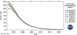 - ↑ "NOAA CCGG page Retrieved 2 March 2016". Archived from the original on 11 August 2011. Retrieved 14 March 2023.
